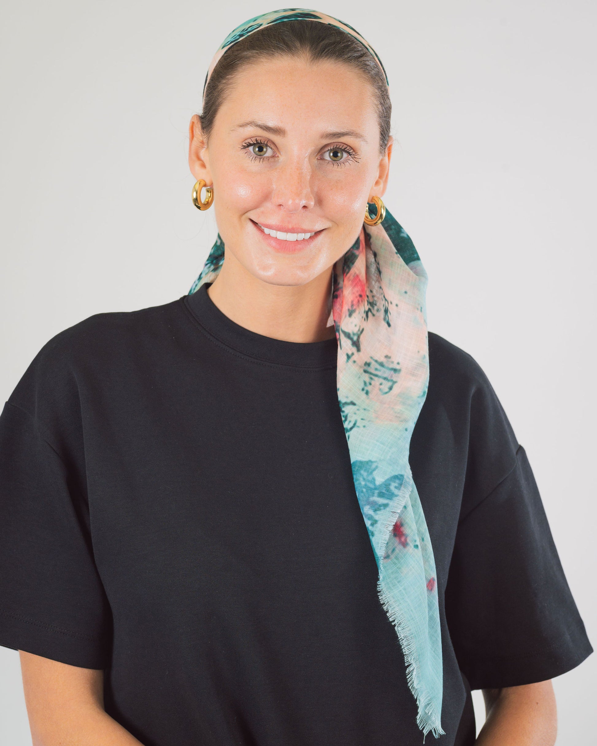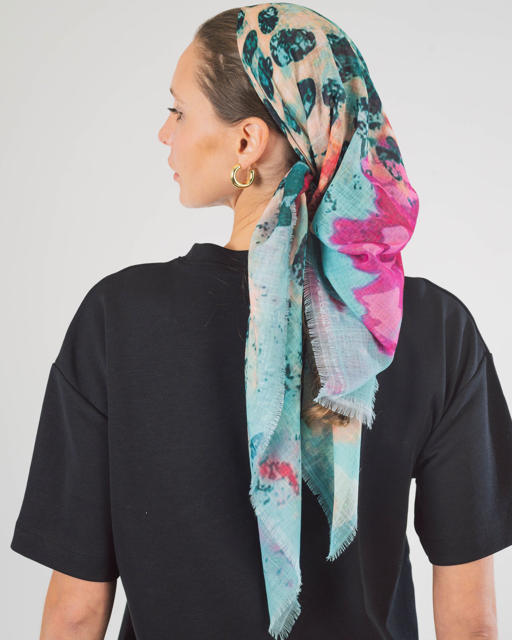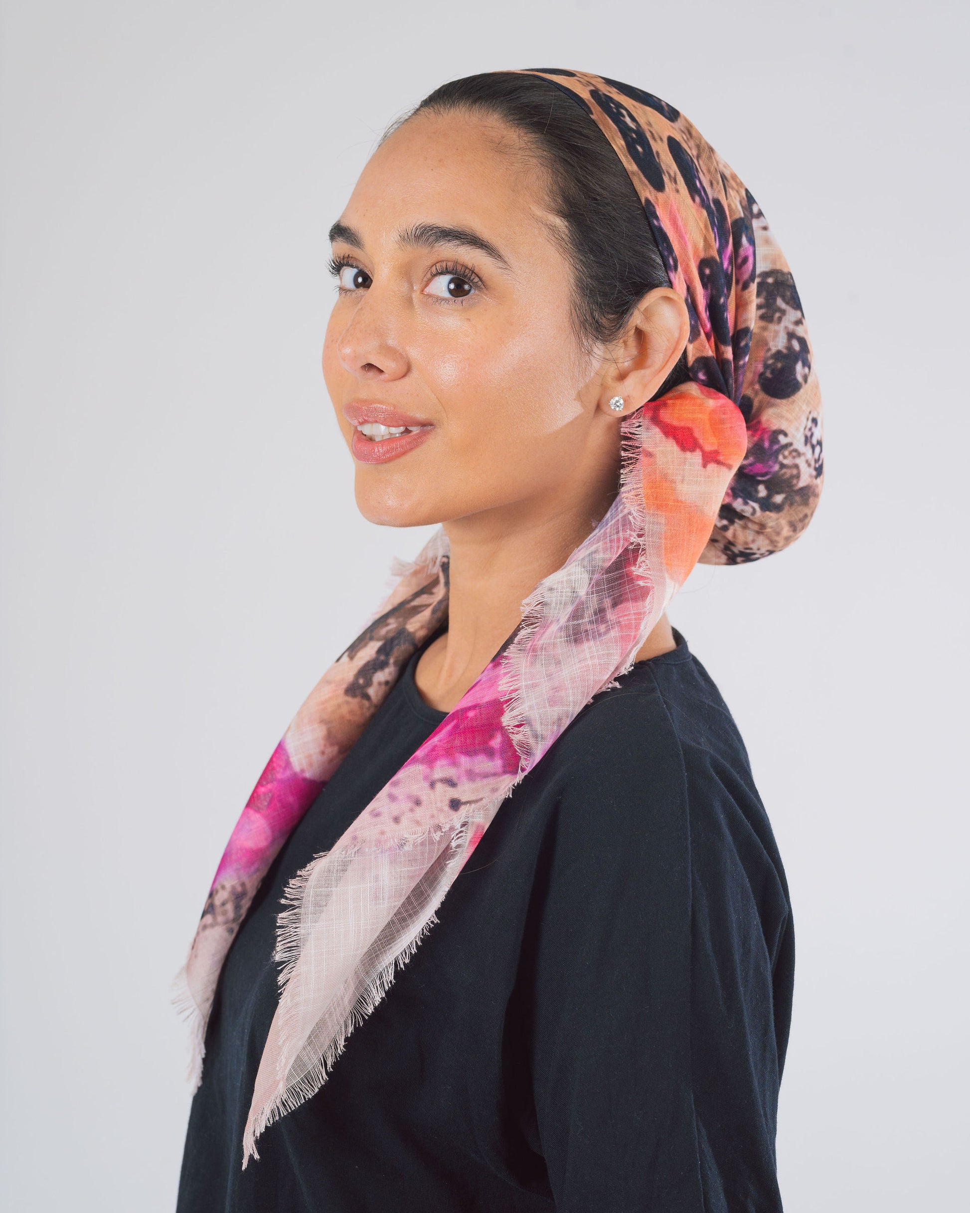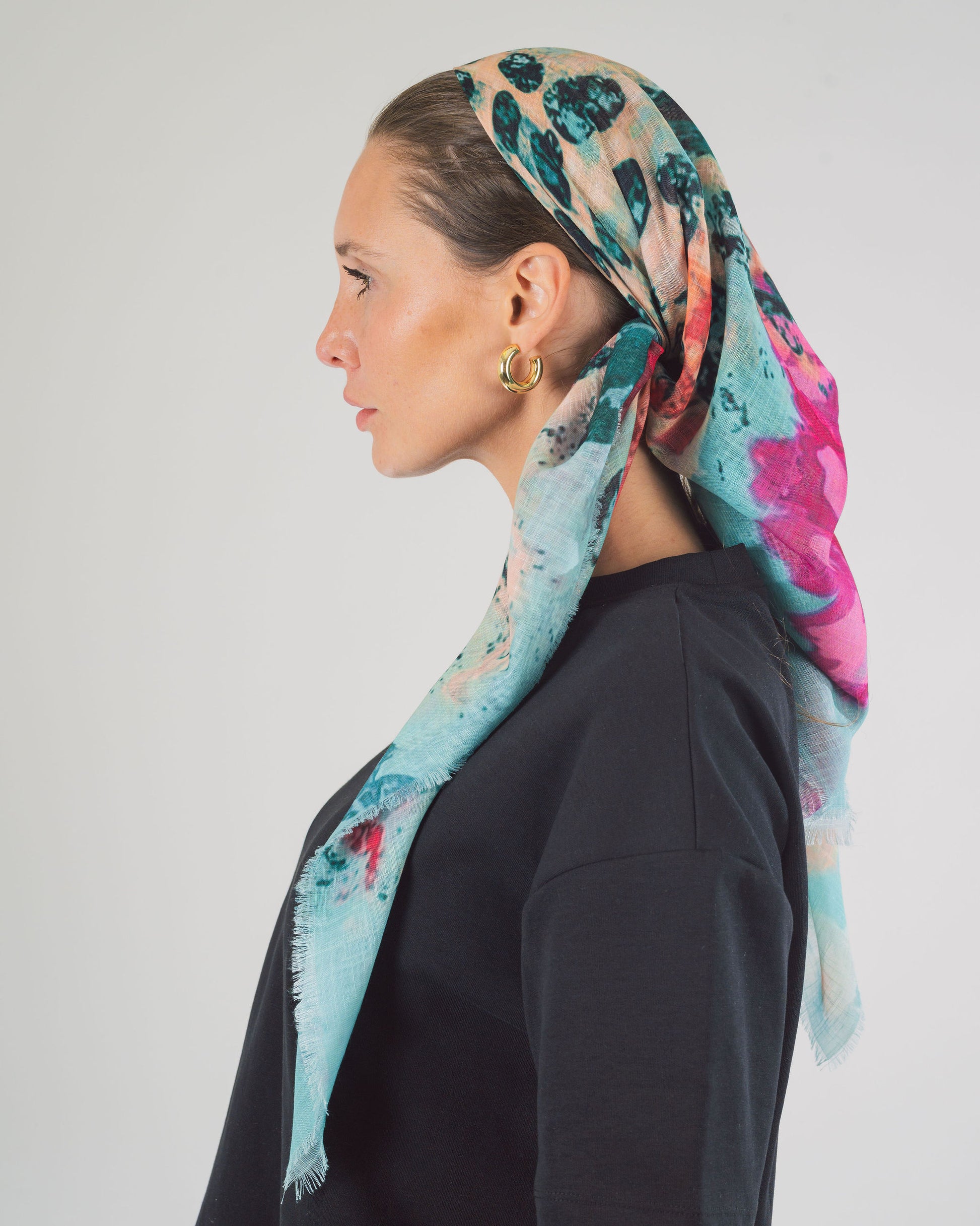 Introducing the "Abstract Multicolor Headscarf" from our Abstract Elegance Series. The vibrant and artistic piece features a stunning blend of colors, creating a dynamic and eye-catching pattern. The abstract design brings a touch of modern art to your wardrobe, making it a perfect accessory for any stylish ensemble.